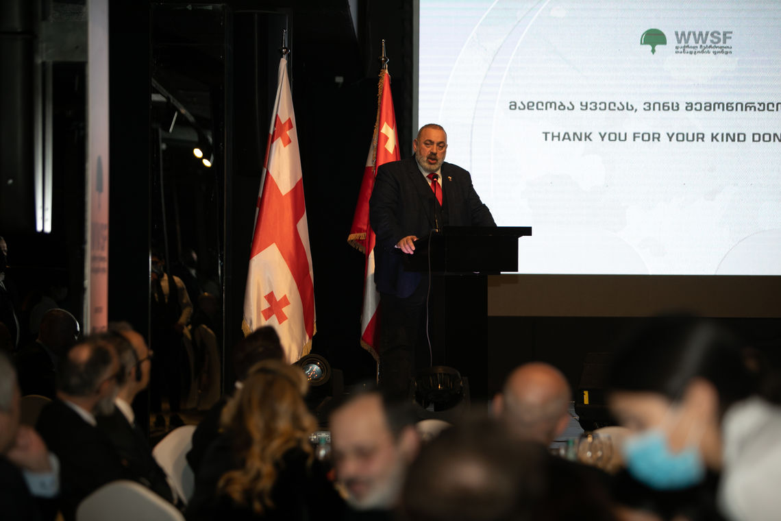 Guests gathered on the traditional pre-Christmas charity dinner were welcomed by founder of the WWSF, George Ramishvili. He thanked everyone for attending the event. Co-founder and CEO of the foundation, David Mamulaishvili presented 2021 activities of the fund and shared several stories of the wounded warriors, who were heavily wounded during 2008 war. These warriors had undergone serious surgeries abroad with the support of WWSF. During 2021 WWSF financed 81 wounded military servicemen and veterans with 437K GEL for the following needs: surgeries, medicines, medical treatments, fitting of homes for those with the special needs, professional re-trainings, medical treatments of underage children of wounded warriors, etc.